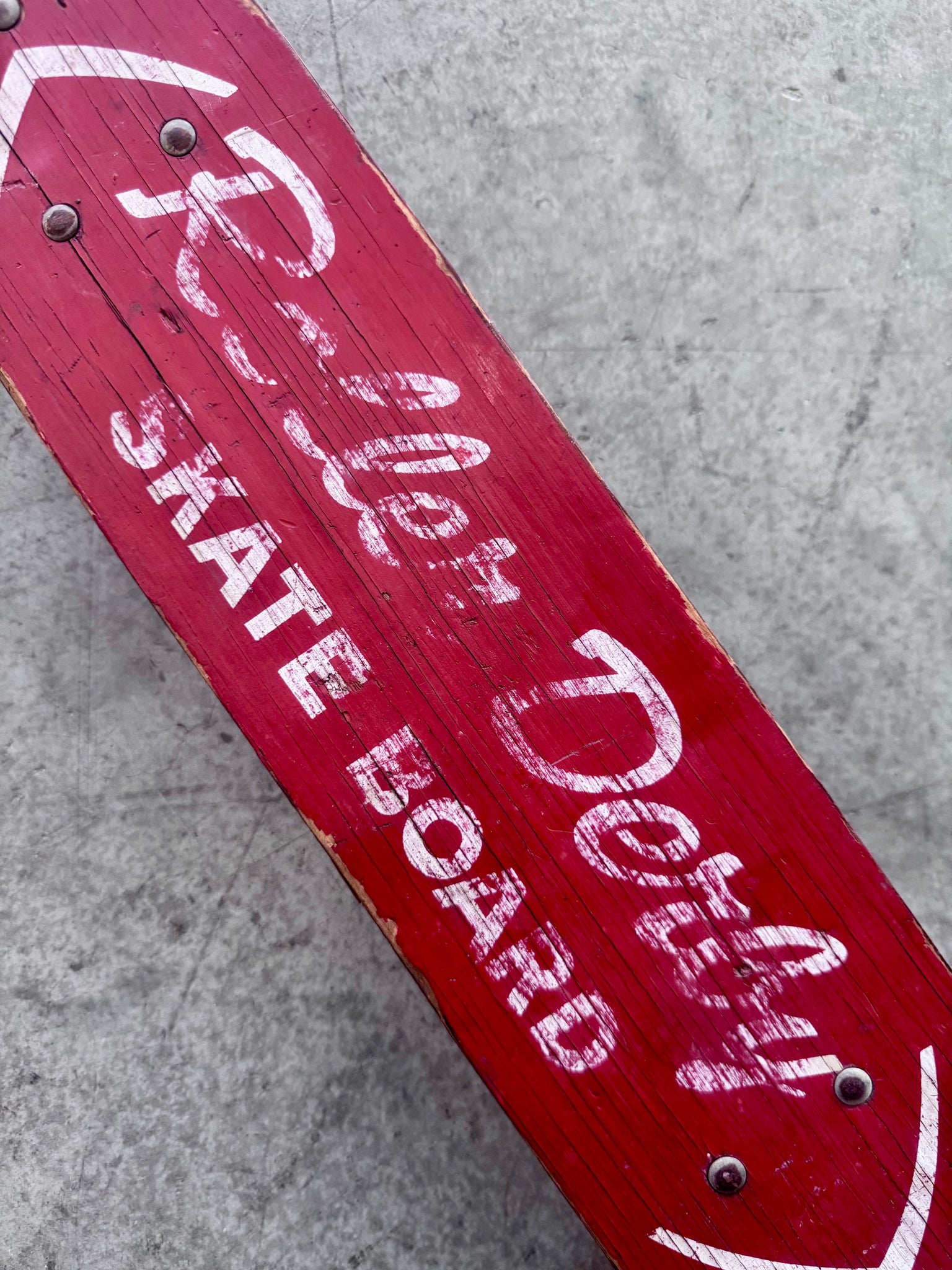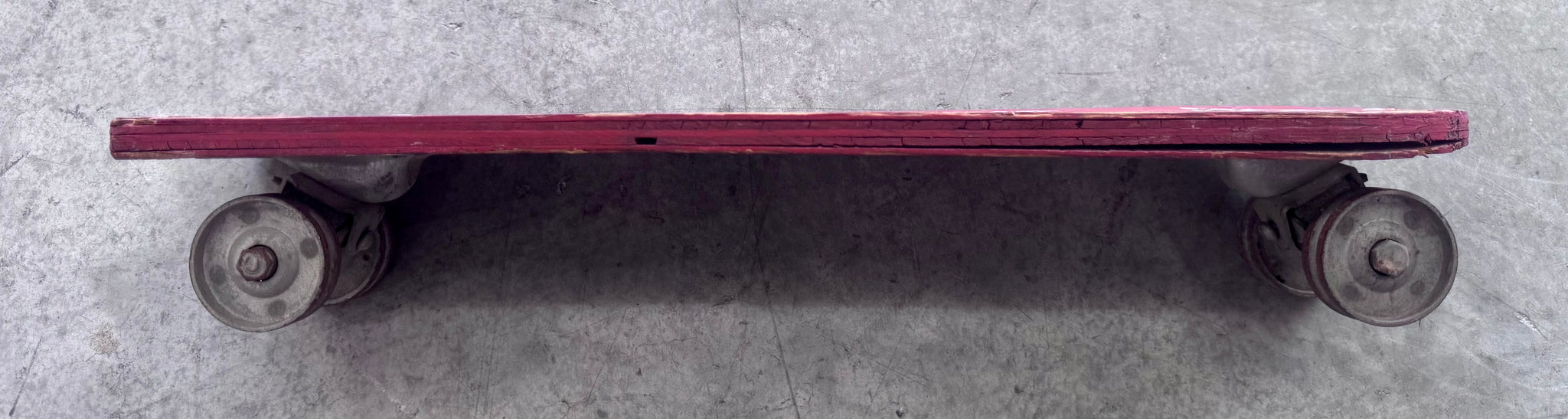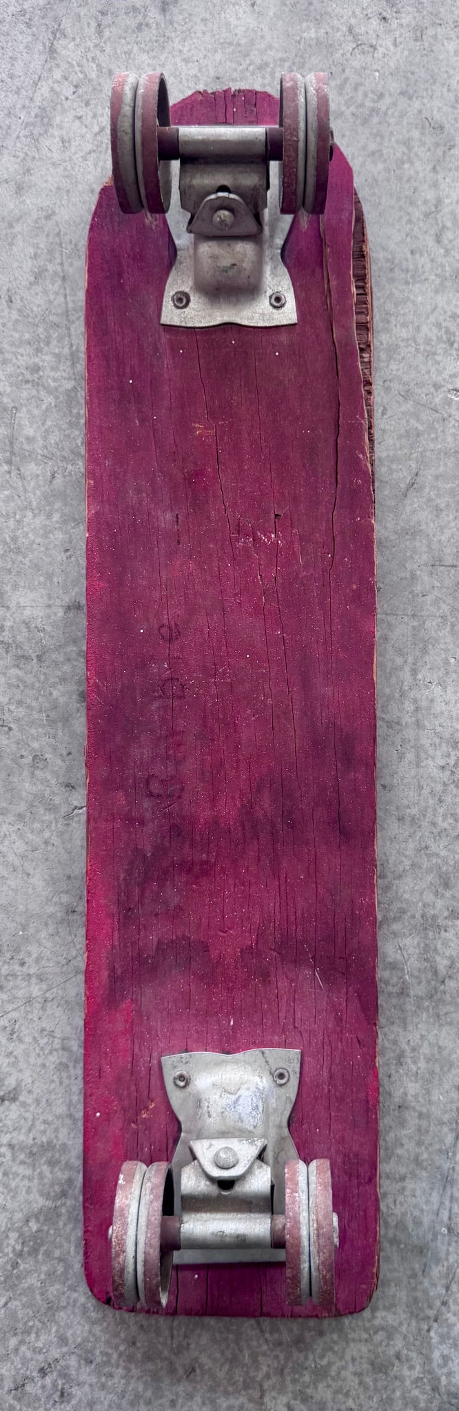 1960’s Roller Derby Skate Board in decent original condition. Wood on deck is delaminated but this is still an excellent wall hanger. Steel wheels all still roll fine. Made in USA
